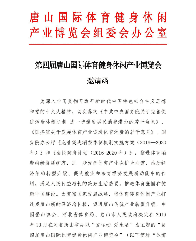 2019第4屆唐山國際體育健身休閑產(chǎn)業(yè)博覽會邀請函